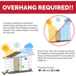 For example, if the measurement from the base of the door to the bottom of the overhang is 8 feet, then the required overhang length is 4 feet.