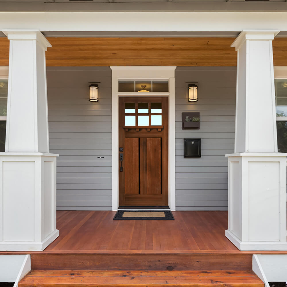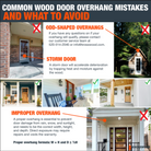 Adequate overhang is critical to the life and performance of exterior wood doors. In order to qualify for your warranty, you should have sufficient coverage to protect your doorfrom weather damage.