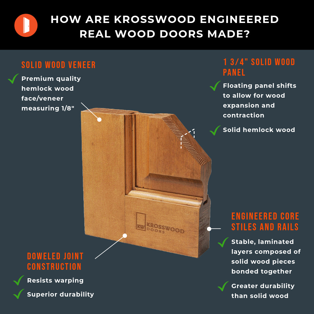 Engineered Hemlock stiles and rails ensure durability