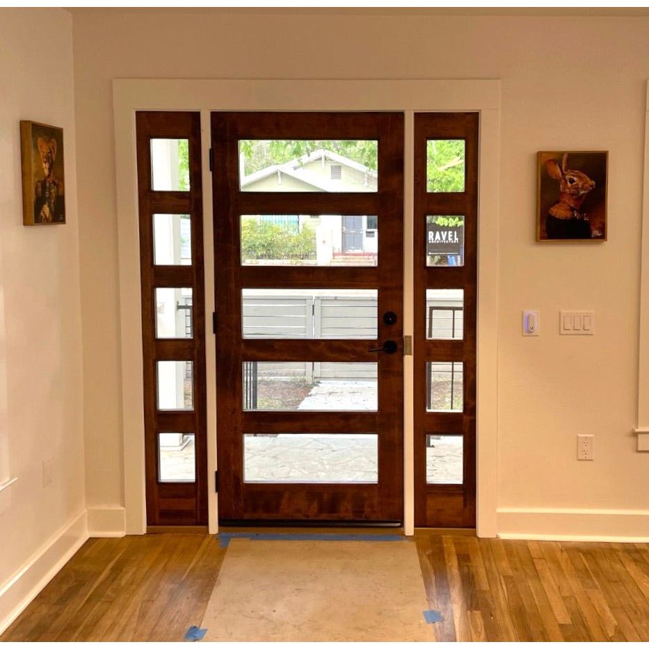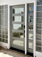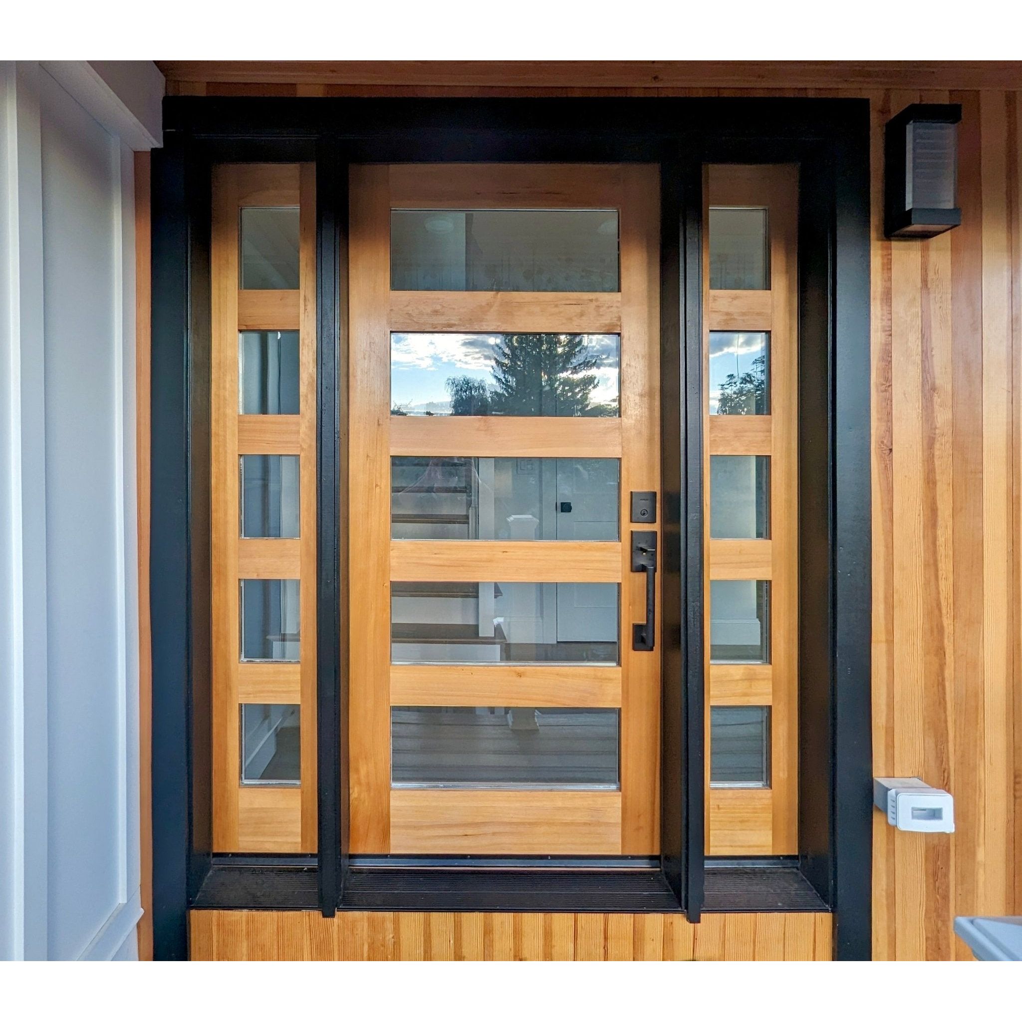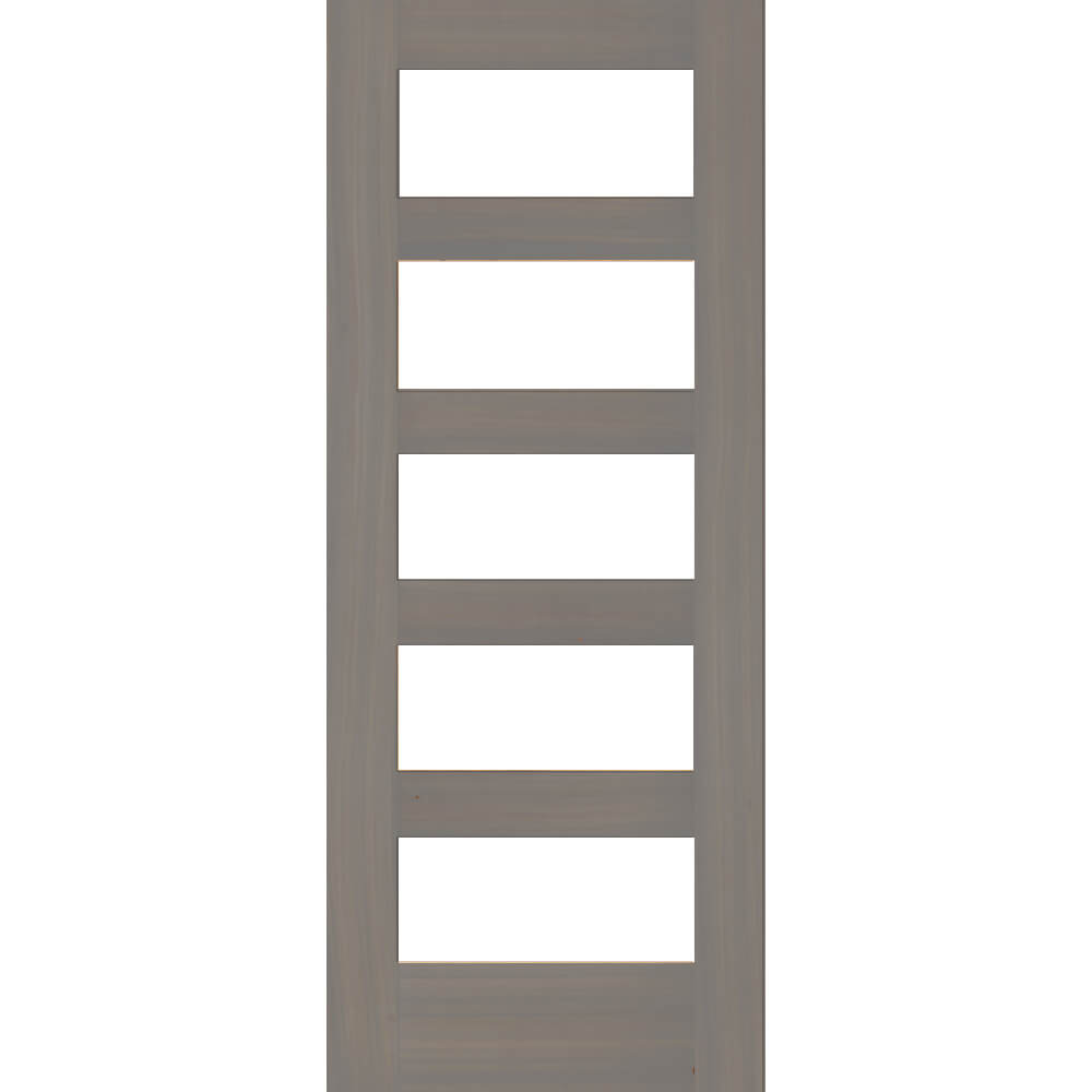 Nothing captures the clean, minimalistic aesthetic of Midcentury Modern design like the Hemlock Wood 5 Lite Clear Glass Front Door from Krosswood Doors. Every door is engineered for strength and longevity and features five clear glass window panels and a naturally straight wood grain that provides a smooth surface for painting or staining. Stable doweled construction ensures that each entry door stands the test of time. Discover your perfect solid wood door today with our customizable sizes, layouts, and stain options.