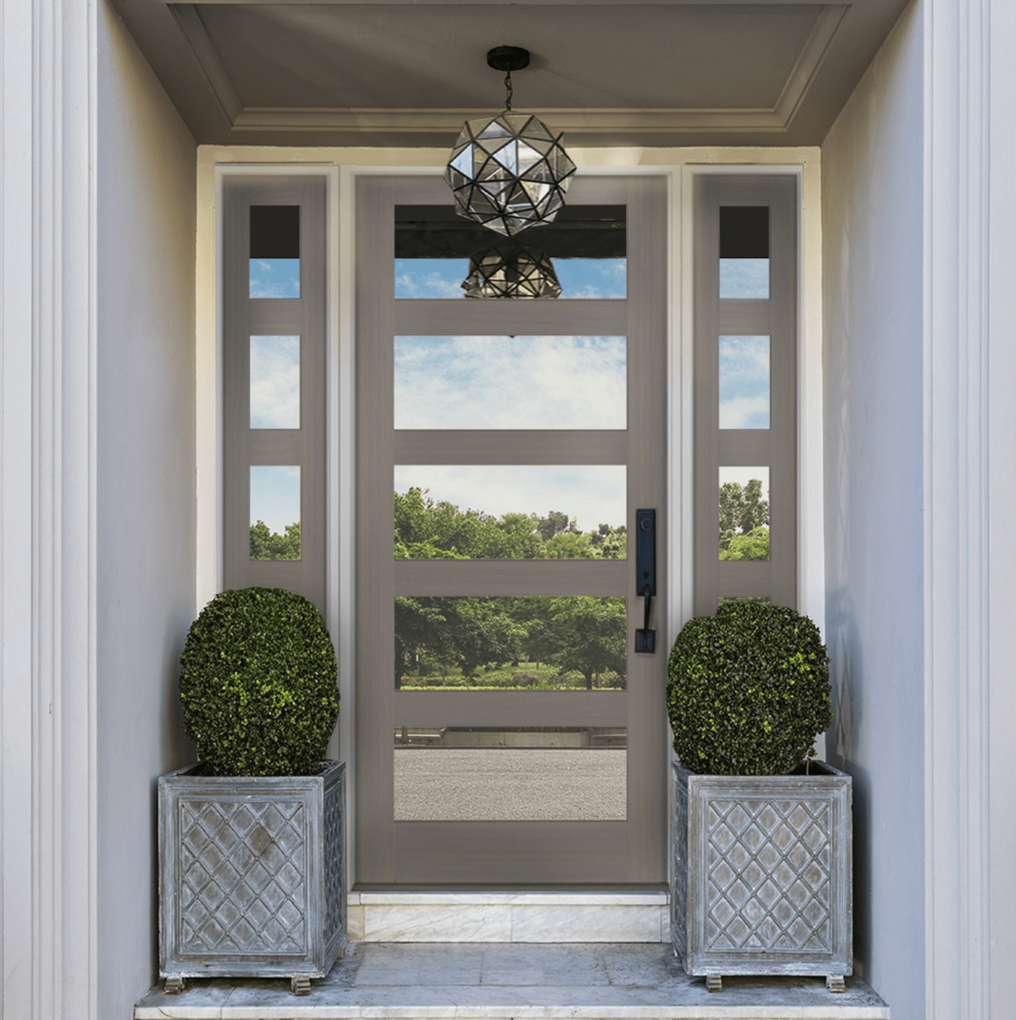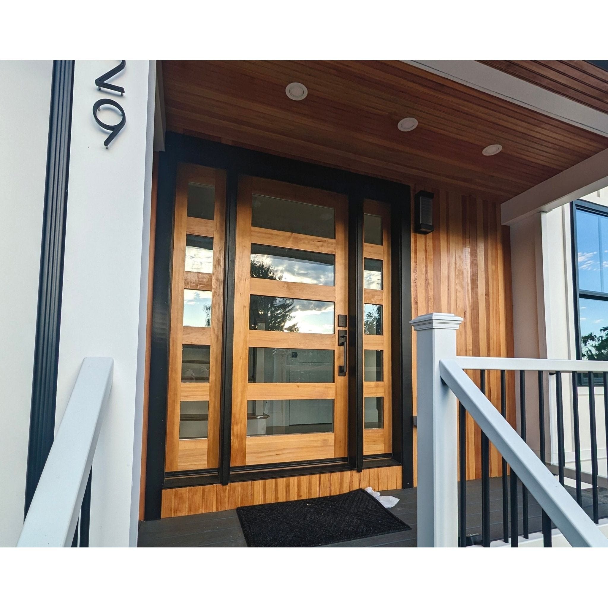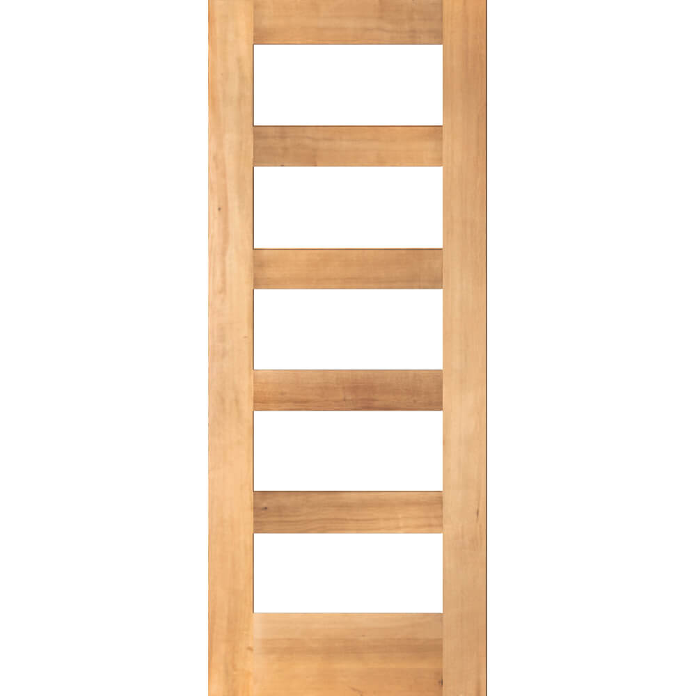 Nothing captures the clean, minimalistic aesthetic of Midcentury Modern design like the Hemlock Wood 5 Lite Clear Glass Front Door from Krosswood Doors. Every door is engineered for strength and longevity and features five clear glass window panels and a naturally straight wood grain that provides a smooth surface for painting or staining. Stable doweled construction ensures that each entry door stands the test of time. Discover your perfect solid wood door today with our customizable sizes, layouts, and stain options.