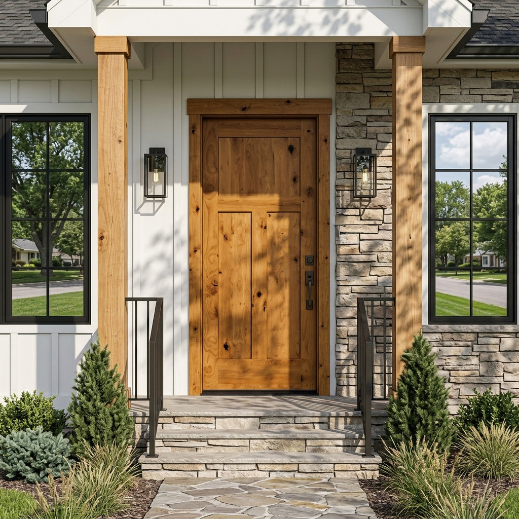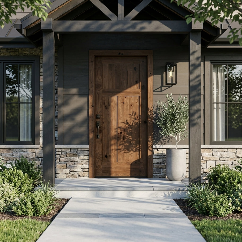 The Craftsman Knotty Alder 3-Panel Wood Exterior Door from Krosswood Doors features a clean and understated design that stands the test of time. Whether you’re looking for a traditional or modern front door, the unique knotting and natural wood grain bring timeless warmth to any home. Our Shaker doors are crafted for strength and longevity and hand finished in the United States to ensure that each one is a true work of art. Choose the perfect fit for you with our customizable size, layout, and stain options.