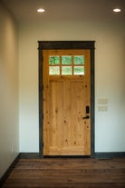 A high value home deserves a high value entryway, and the American Craftsman Knotty Alder 6 Lite Clear Glass Window Front Door from Krosswood Doors embraces handcrafted design and superior quality construction. Every solid wood door is engineered for strength and longevity, and features natural wood grain, unique knotting, a decorative dentil shelf, and six clear beveled glass panels to allow natural light into your home. Find your perfect fit today with our customizable size, layout, and stain options.
