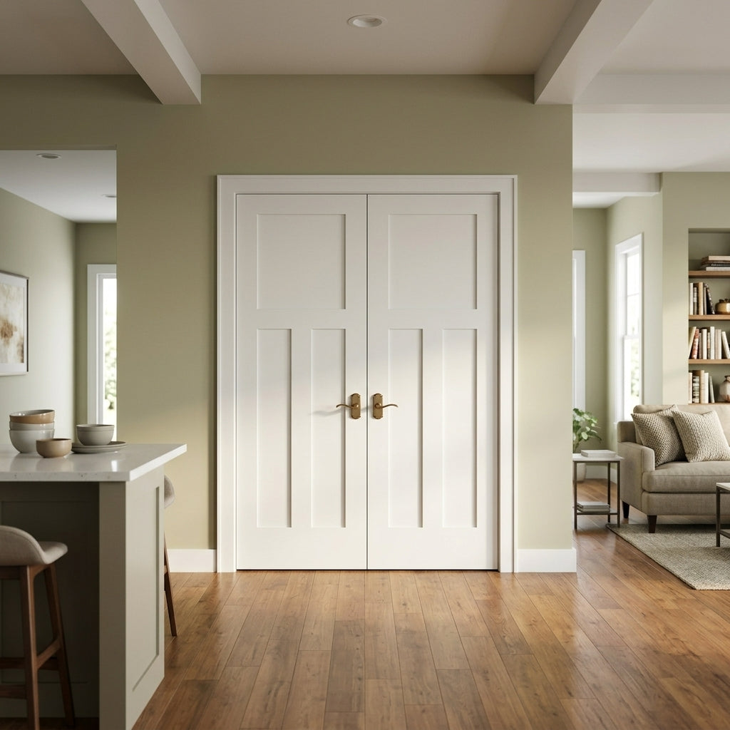 The Craftsman 3 Panel Solid Core MDF Interior Double Door from Krosswood Doors is crafted with a simplistic and understated design that stands the test of time. This quintessential double door features three panels, superior quality engineering, and clean, minimalistic lines – a hallmark of the Shaker style. Arrives primed and ready to paint to match your interior décor.