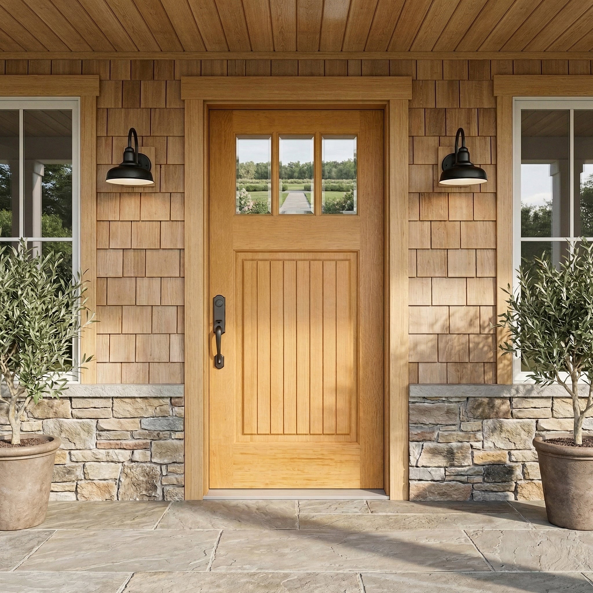 Craftsman 3 Lite Glass Hemlock Wood Front Door