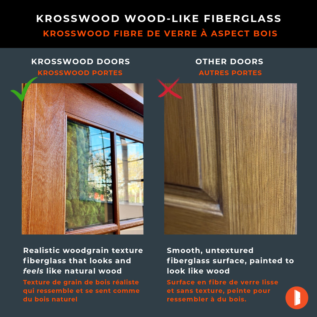 The UINTAH Modern Farmhouse 6 Lite Clear Glass Window Wood-Like Fiberglass Front Door from Krosswood Doors will transform your exterior into an eye-catching statement piece that will stand the test of time. Our fiberglass doors are engineered to last for decades, and feature a stainable mahogany wood-like textured surface with a high-density insulating core. Six insulated double pane clear glass windows let in plenty of natural light to brighten your entryway. Find the perfect door for you with our six stain options – expertly applied in the United States – as well as glass, layout, and sidelight options.