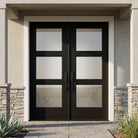 BRIGHTON Modern Fiberglass 3 Lite Frosted Glass Double Door