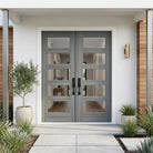ASCEND Modern Fiberglass 5 Lite Clear Glass Double Door