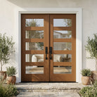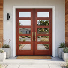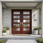 With the ASCEND Modern Fiberglass 5 Lite Clear Glass Wood-Like Front Double Door from Krosswood Doors, you're not just investing in a door – you’re investing in a statement piece that offers the long-lasting security your family deserves. Designed to complement a variety of architectural styles, this contemporary fiberglass exterior door features a mahogany wood textured surface that feels like real wood without the maintenance. Ten clear glass windows, composite fiberglass surface, and a high-density insulating foam interior ensure your door is at the forefront of contemporary design. Find the perfect exterior door for you with our versatile stain options – expertly applied in the United States – as well as glass, layout, and sidelight options.