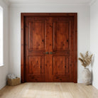 Nothing can replace the timelessness of natural wood, and with the Rustic Knotty Alder Wood Square Top Interior Double Door from Krosswood Doors, your home will radiate with a warmth that stands the test of timeThis Rustic wood door is the perfect example of the Modern Farmhouse style with its stunning hardwood grain, unique knotting, and sturdy, doweled joint construction to ensure that your door will be a favorite for generations to come. Customize the perfect door for you with our selection of size, layout, and stain options.