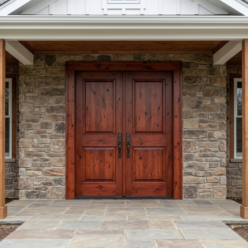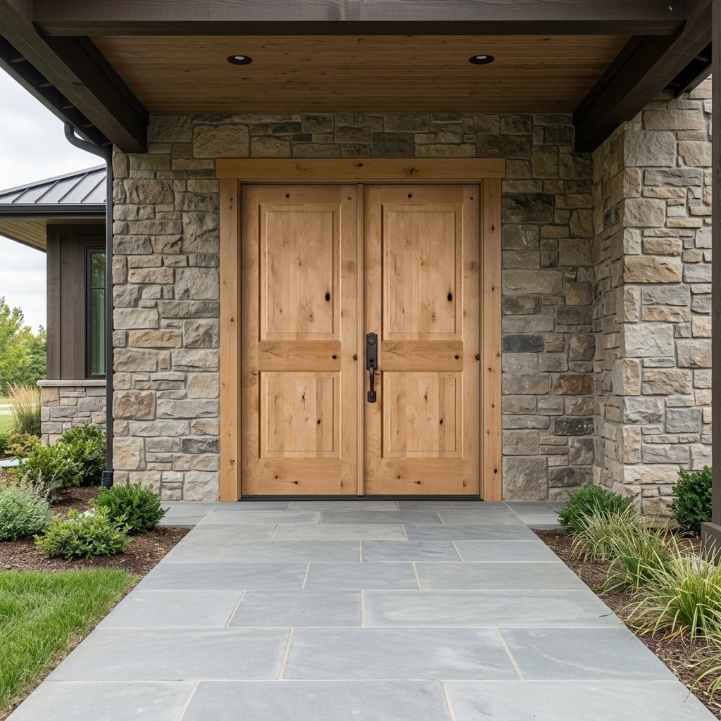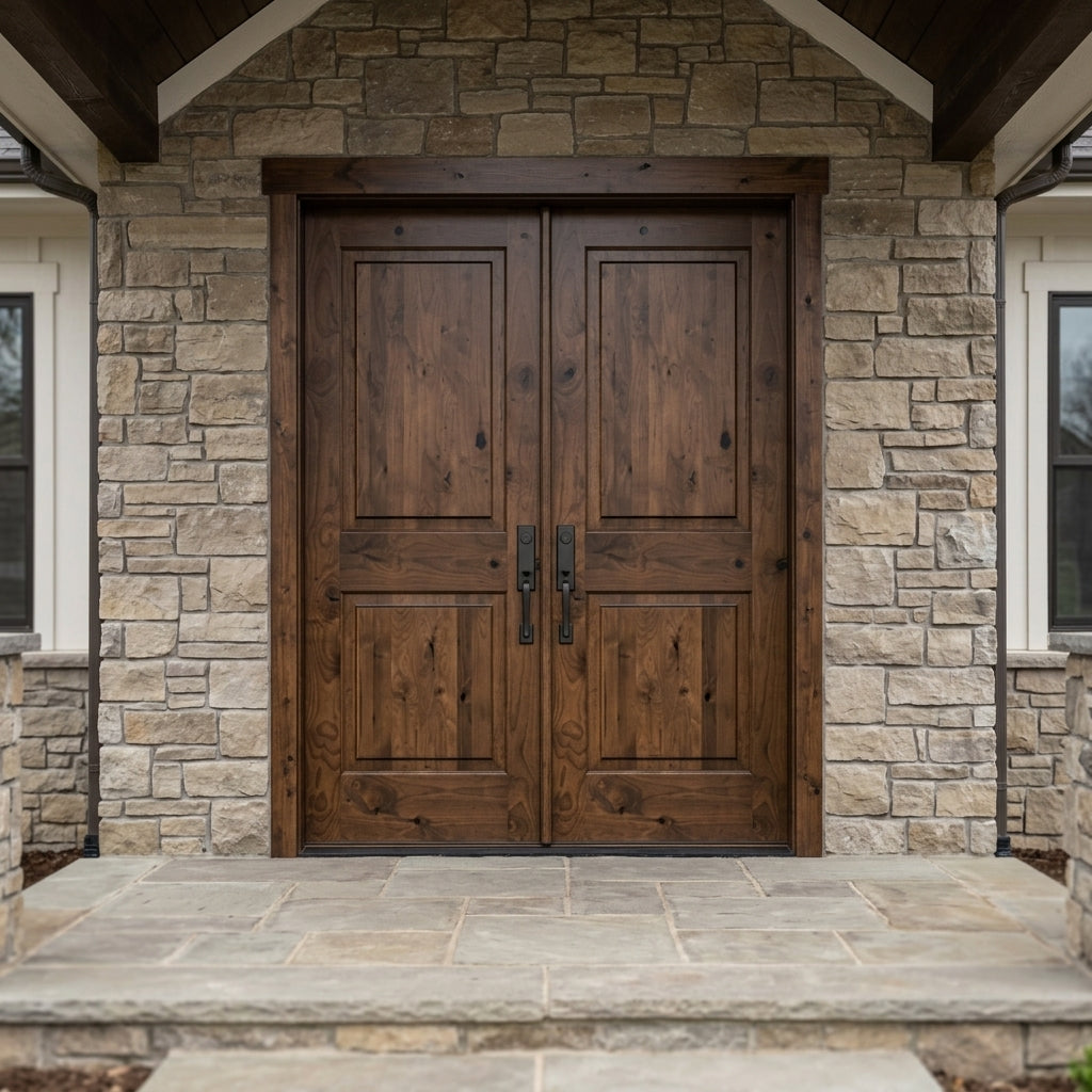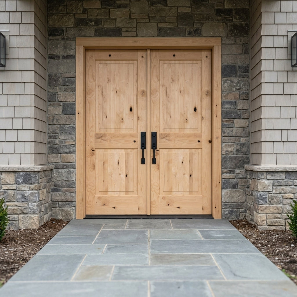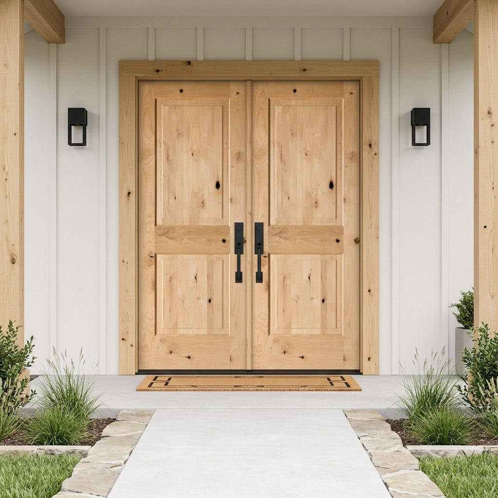 Modern Farmhouse Knotty Alder 2 Panel Square Top Exterior Double Door