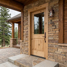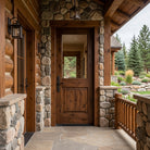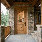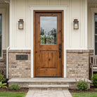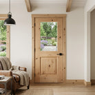 Create a warm, inviting entryway with the Rustic Farmhouse Knotty Alder Half Lite Clear Glass V-Groove Front Door from Krosswood Doors. This stunning solid wood door showcases superior craftsmanship and features natural wood grain, unique knotting, and a large glass panel to allow sunlight into your entryway. Find the perfect door for you with our sizes, layouts, and stain options.