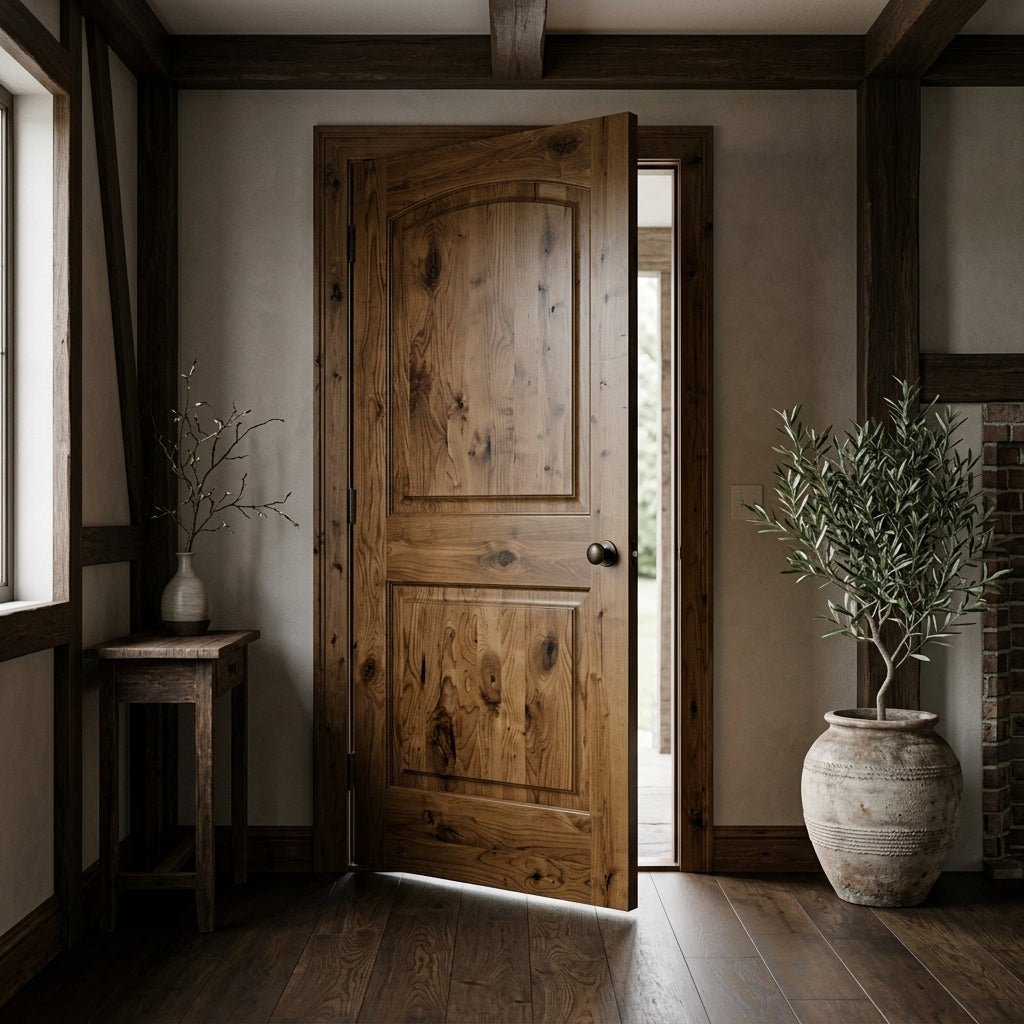 Features dark, resin-sealed knots that enhance the individual beauty of each entry door