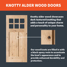 Crafted from solid knotty alder wood, each door features dark, resin-filled knots, adding rich texture and one-of-a-kind character.