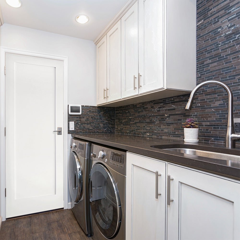 Nothing brings minimalistic elegance to a room like the Shaker Single Panel MDF Interior Door from Krosswood Doors. This timeless door style was popularized in America in the late 19th century for its thoughtful and utilitarian design and features one clean, simple panel to suit both classic and contemporary rooms. Arrives primed and ready to paint to match any closet, bedroom, office, laundry room, or pantry.